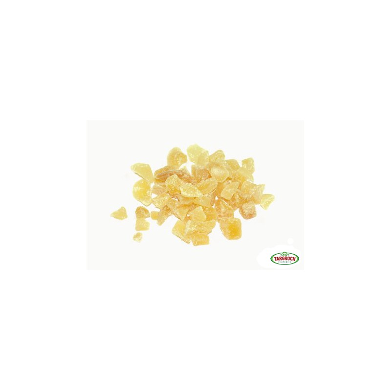 Składniki: Imbir suszony (12,96%), cukier (74,01 %) , kwas cytrynowy (1,2%), substancja konserwująca SO2